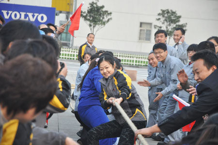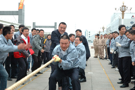 在拔河比赛中 ,来自挖掘机事业部、机关事业部、营销公司以及调试、质保、桥箱、结构件、总装等支部的众多代表队 ,以饱满的热情投入的此次比赛中 ,最终在拔河男子组比赛中 ,挖掘机支部代表队夺得冠军 ,总装一支部代表队获得亚军 ,结构件支部代表队获得季军 ,而在拔河女子组比赛中 ,桥箱支部代表队夺得冠军 ,钣金支部代表队获得亚军 ,营销支部代表队获得季军 。